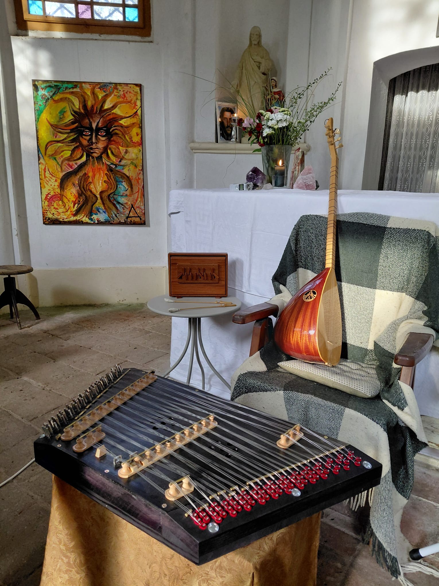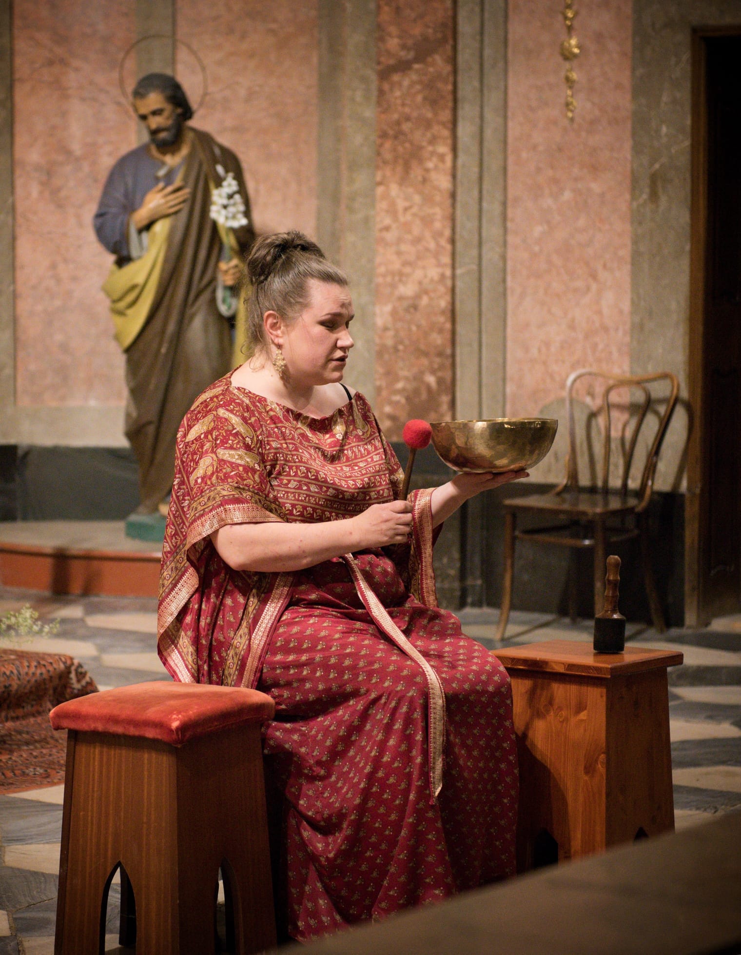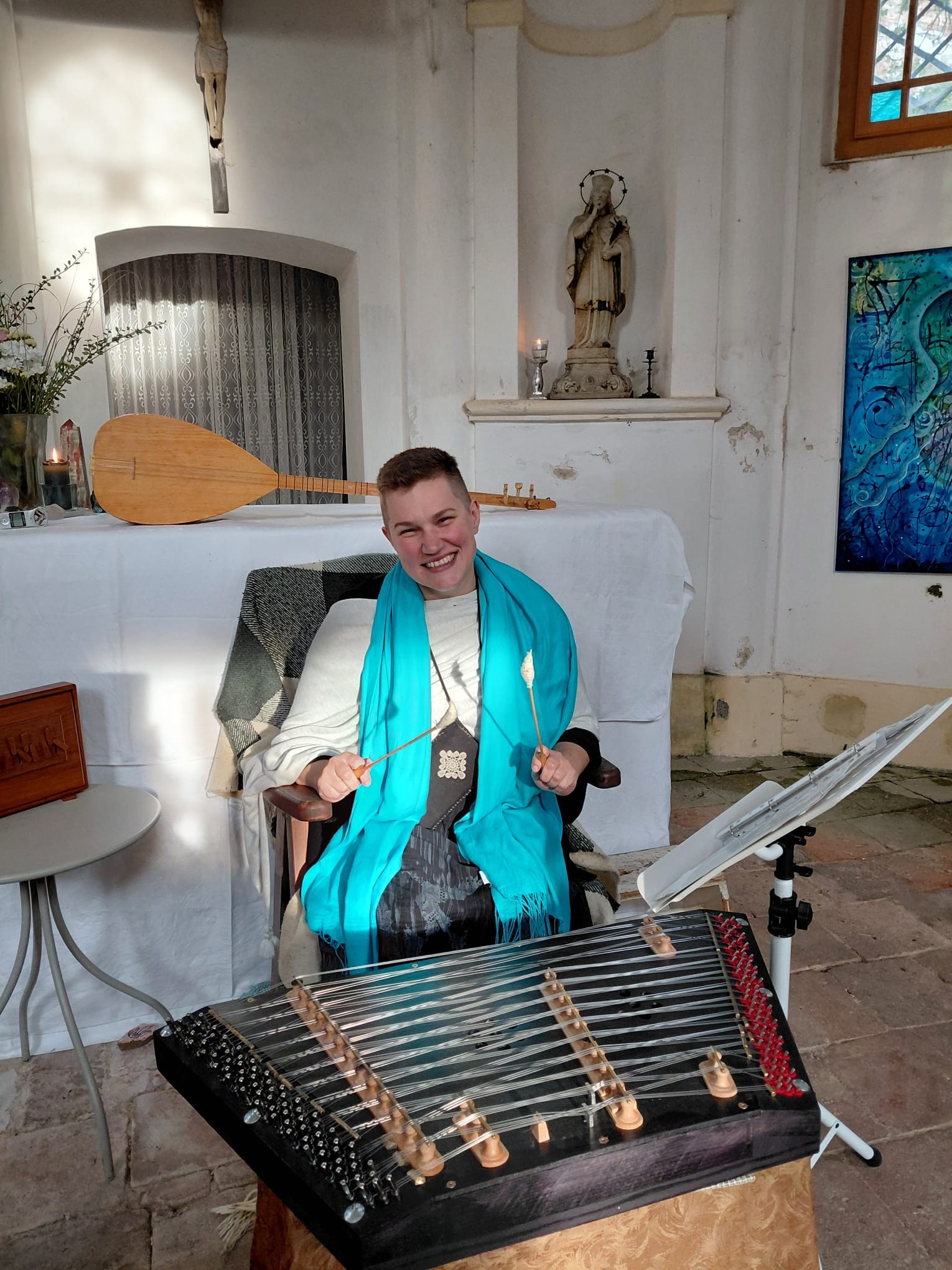 Alexandry interpretace se odlišuje tím, že chorály středověké abatyše nezpívá striktně dobově, ale intuitivně a k doprovodu si volí netradiční nástroje: varhany, cimbál, citeru, klavír, indické harmonium shruti box, tureckou loutnu saz a tibetskou mísu.
